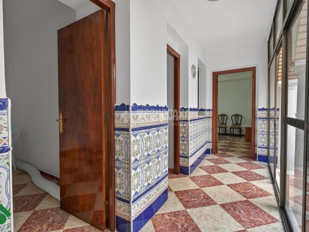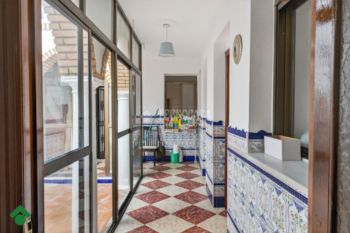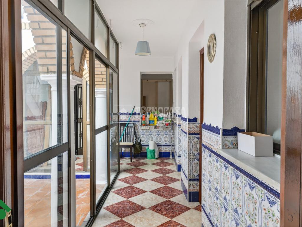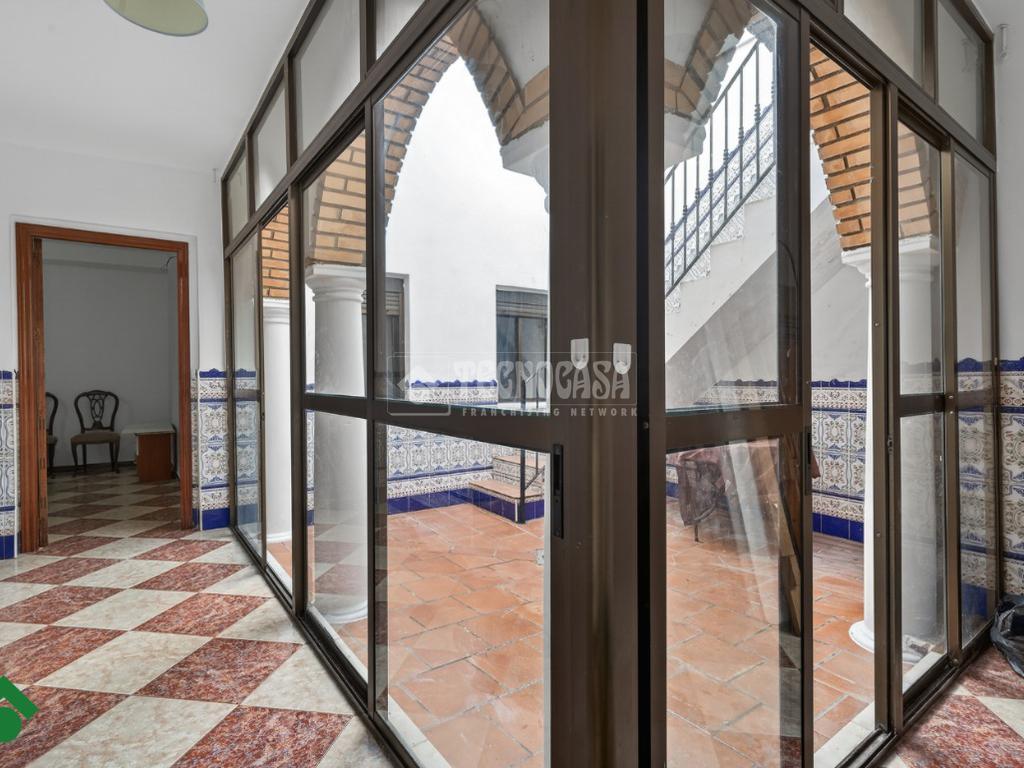El patio, cerrado con ventanales de aluminio, se convierte en un espacio versátil y acogedor. Desde aquí se accede a la terraza, donde encontramos un trastero de gran tamaño y una terraza compartida con la vivienda superior.