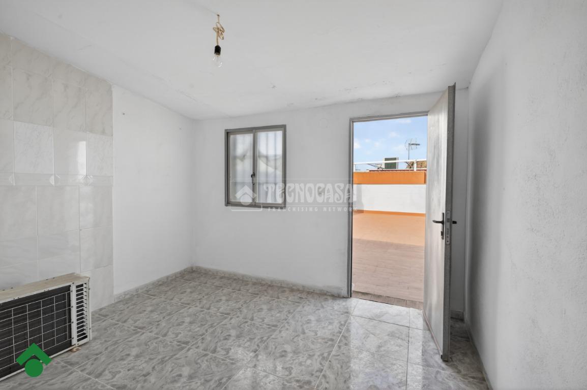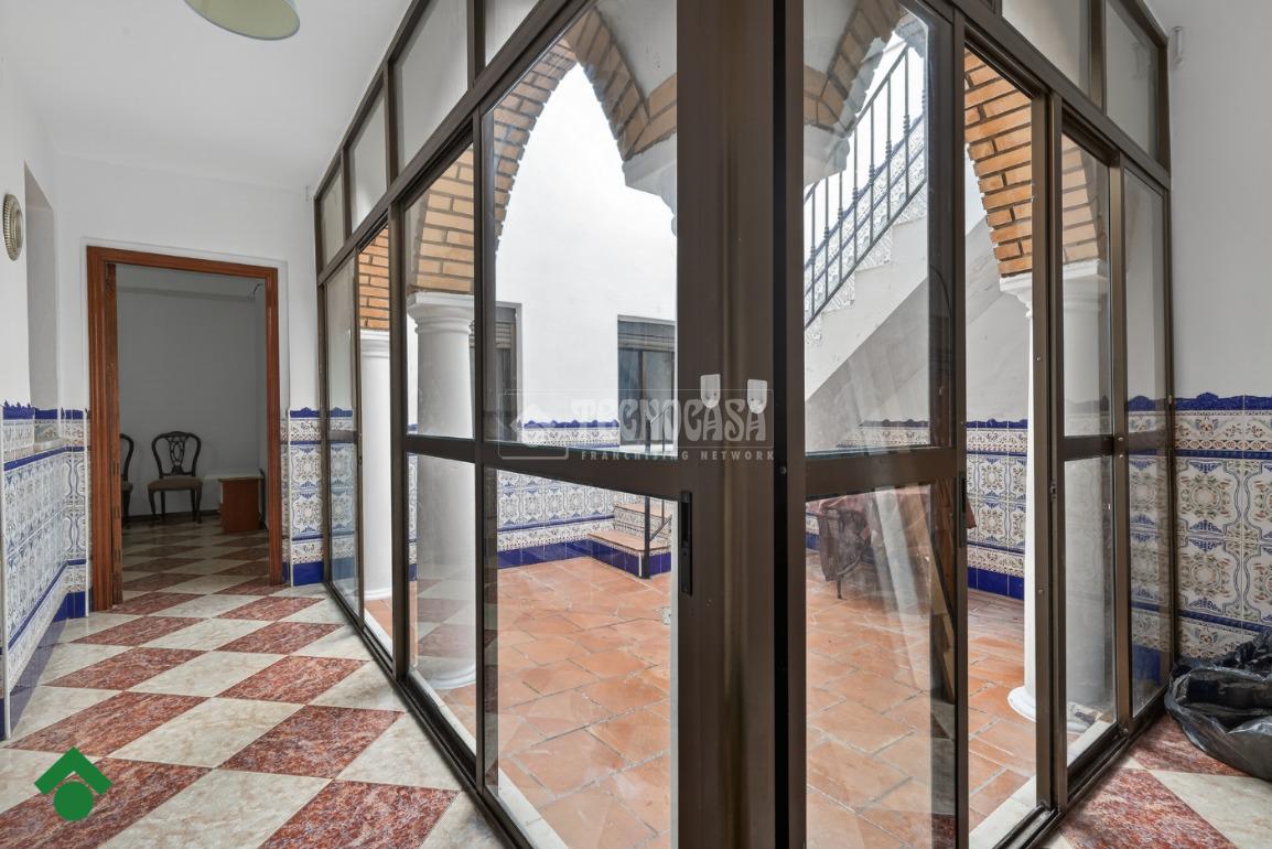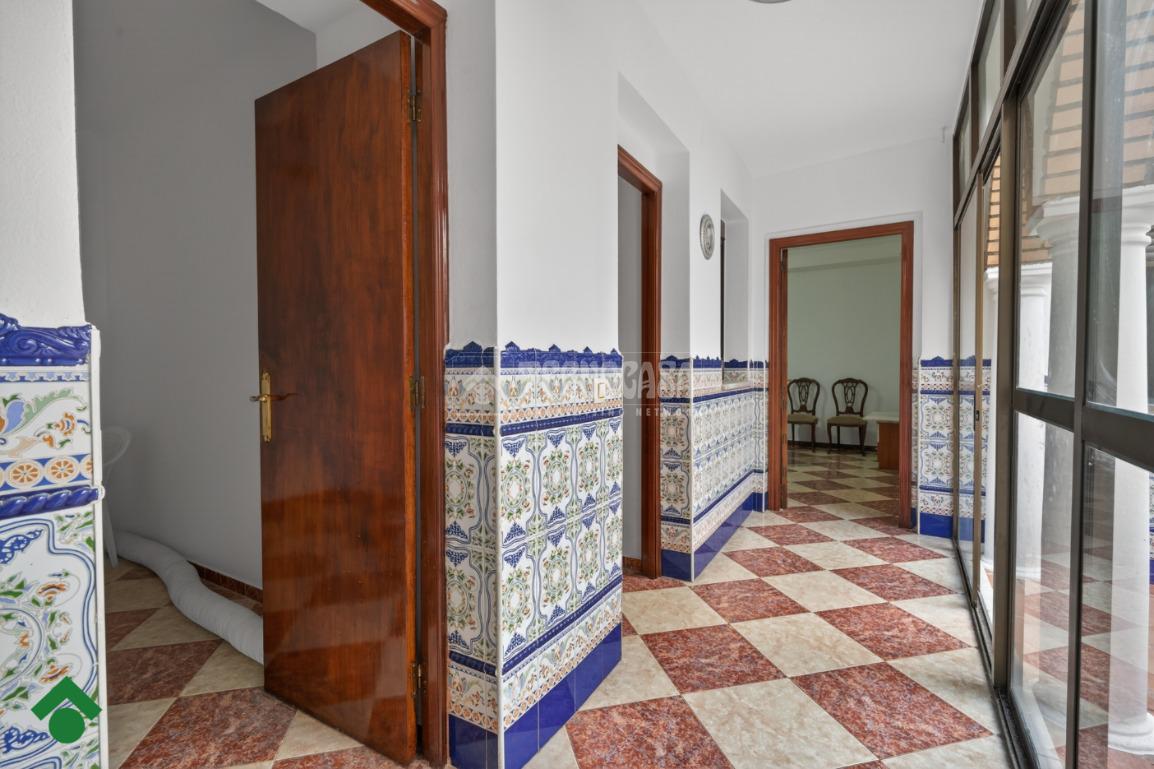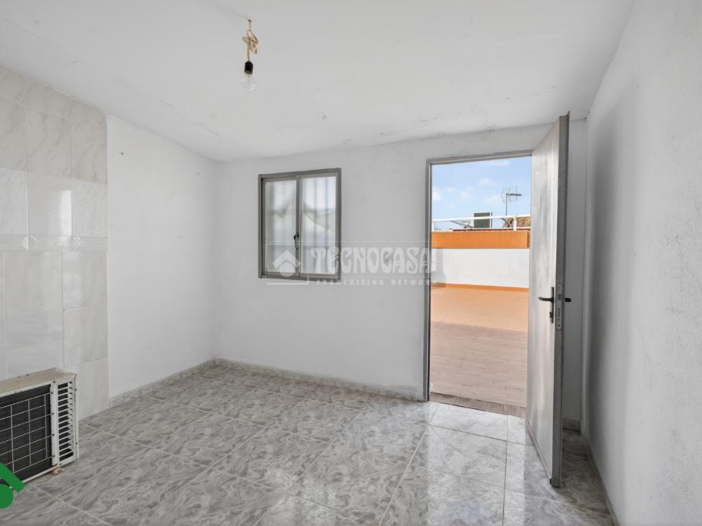 El patio, cerrado con ventanales de aluminio, se convierte en un espacio versátil y acogedor. Desde aquí se accede a la terraza, donde encontramos un trastero de gran tamaño y una terraza compartida con la vivienda superior.