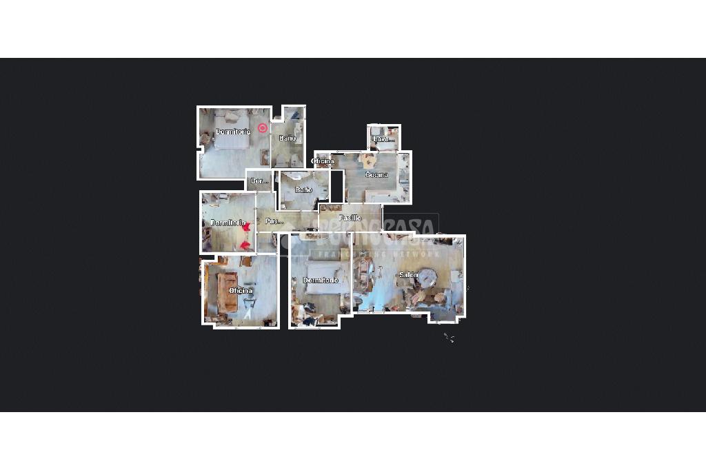 El piso se distribuye en 4 habitaciones, siendo la principal tipo suite, con baño completo con bañera y ventana al exterior. Además, la vivienda dispone de un segundo baño equipado con placa de ducha.