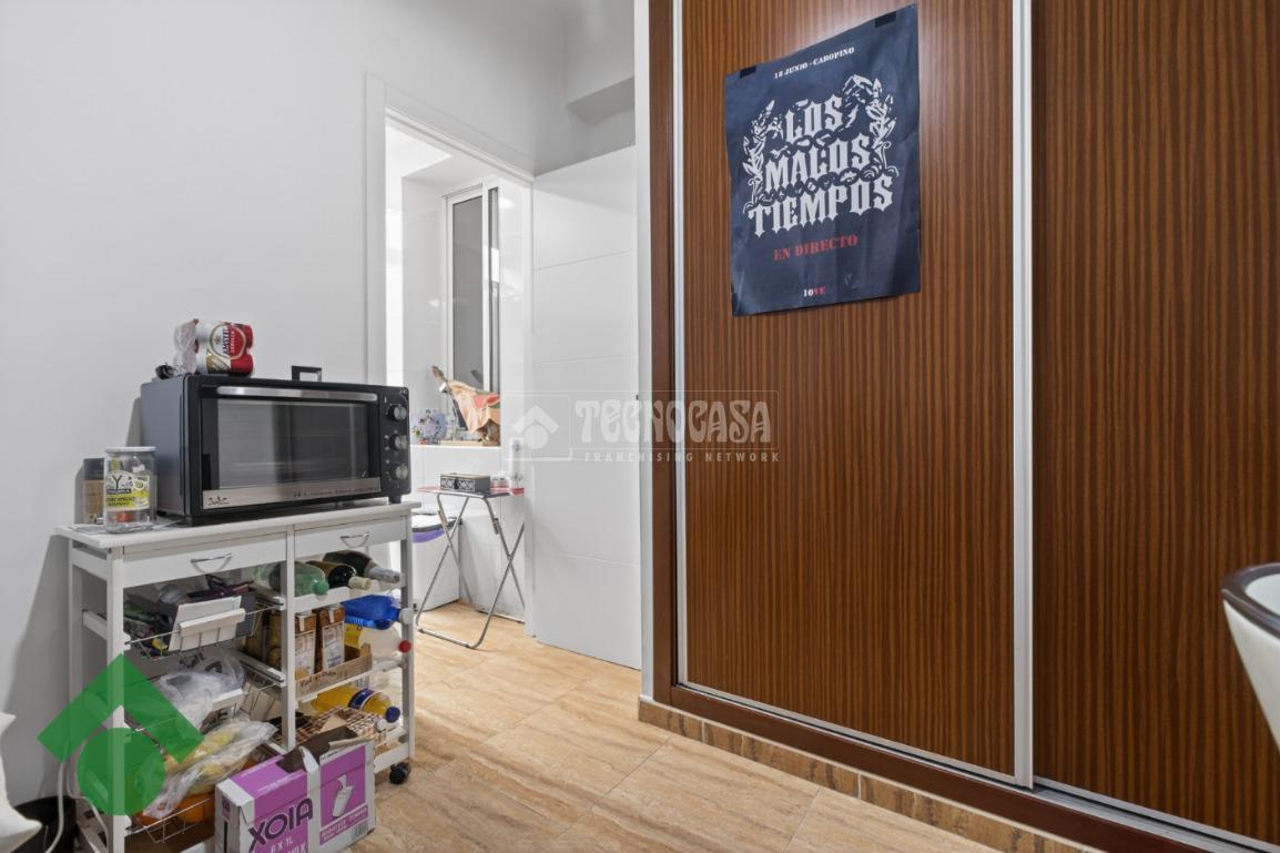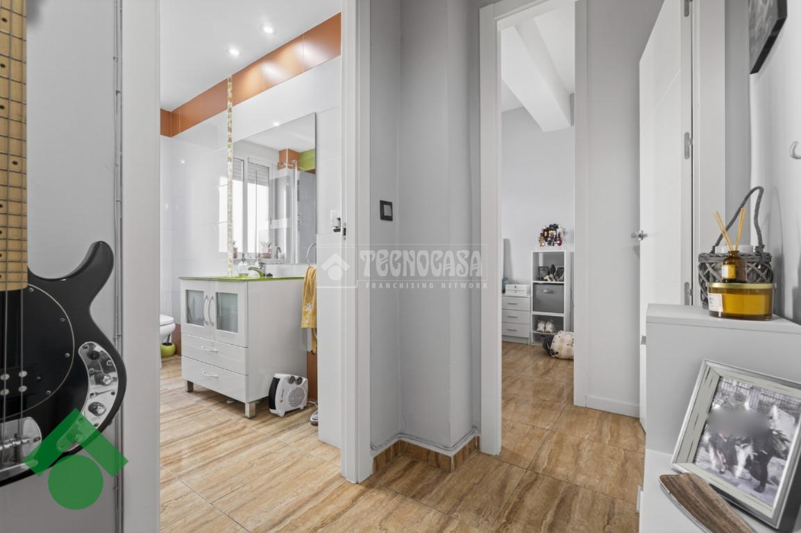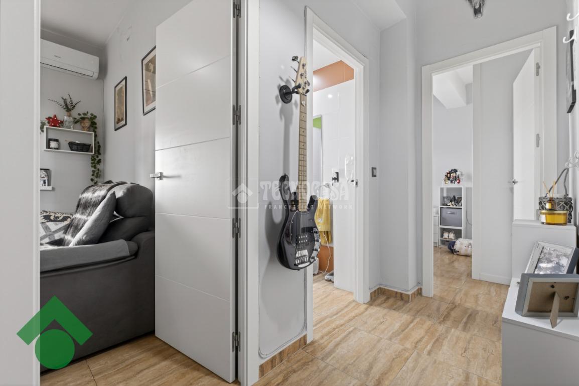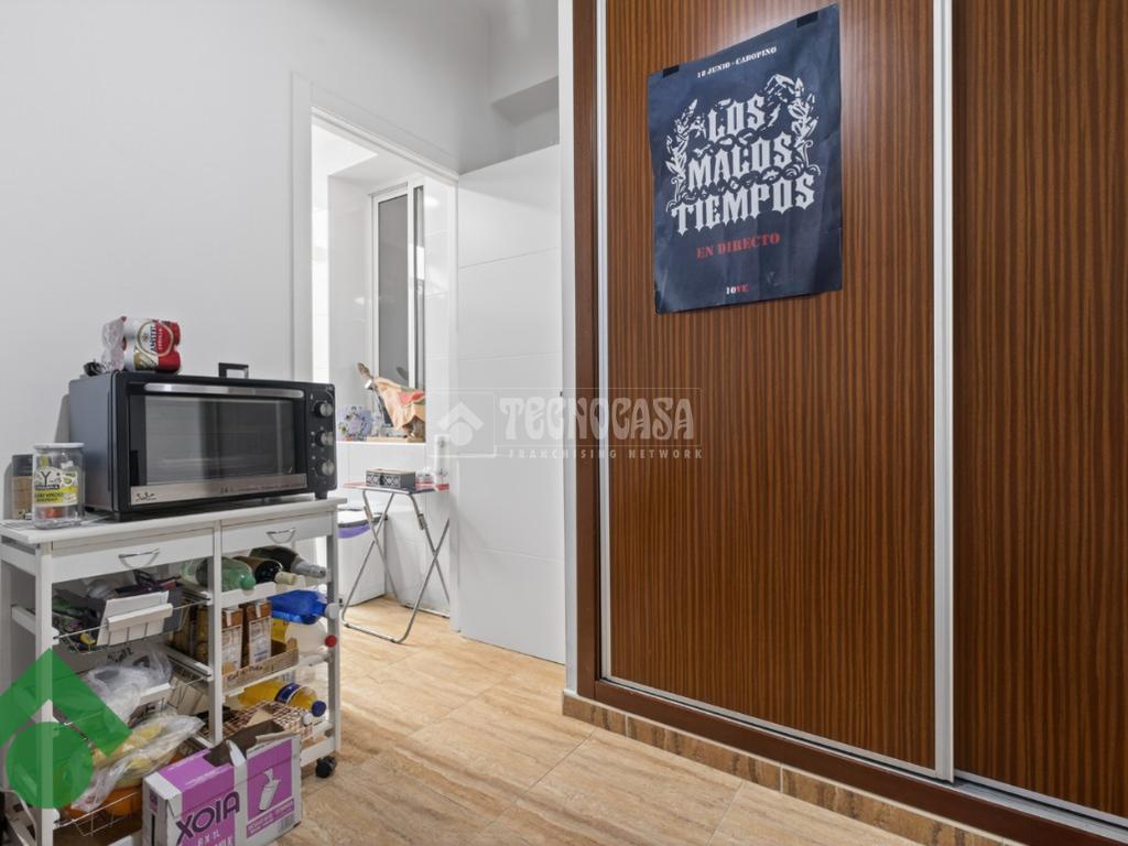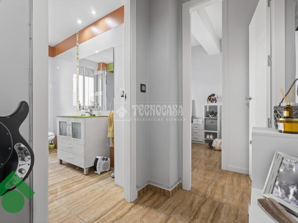 Desde el inicio del pasillo, a la derecha, se dispone el salón, junto a una cocina reformada, amueblada y funcional. En esta zona se encuentra también un tercer dormitorio con armario empotrado, ideal como dormitorio juvenil, despacho o vestidor.