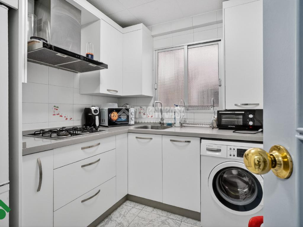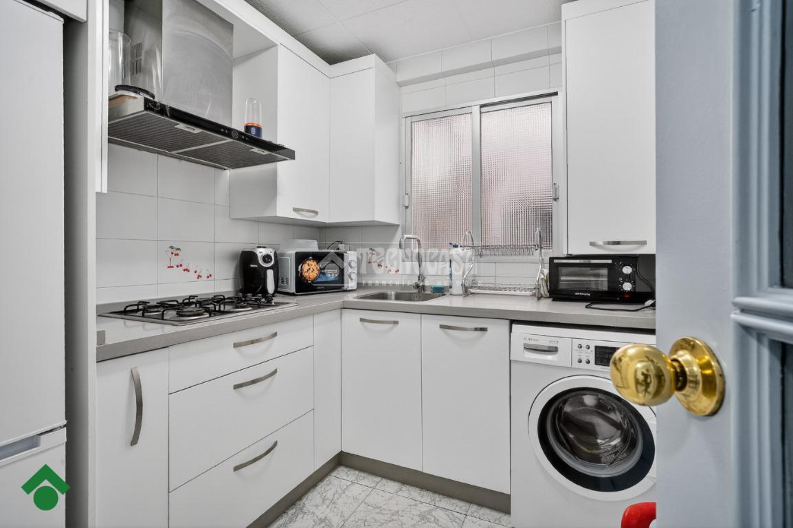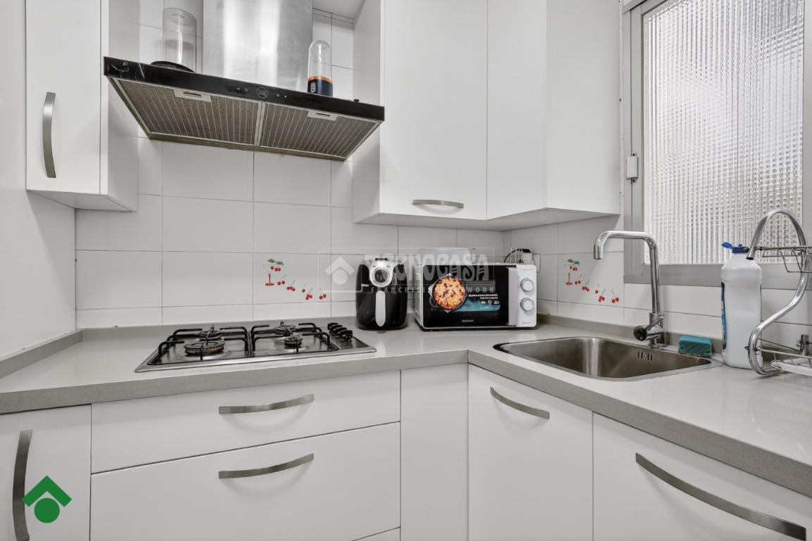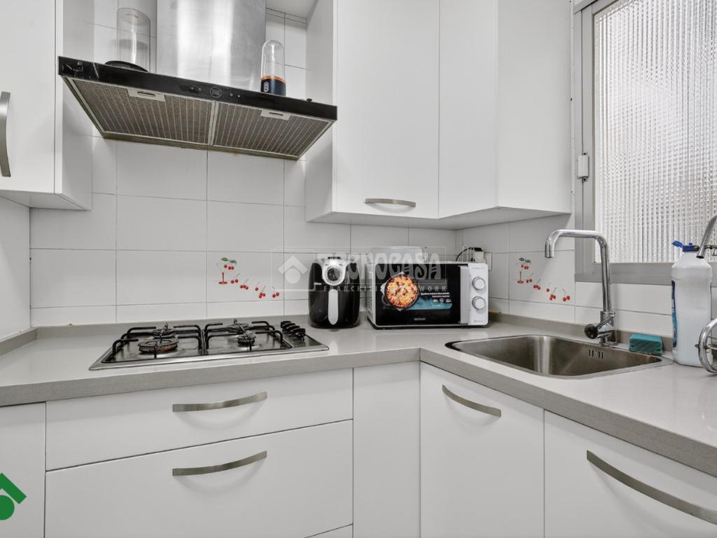La cocina, totalmente amueblada y equipada, funciona mediante gas, ofreciendo un espacio práctico y funcional.